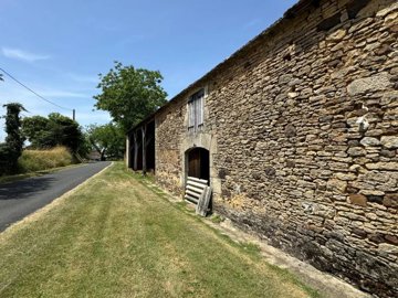 Attractive stone barn with a floor area of 70 m² on two levels, with adjoining hangar and former feeding troughs.