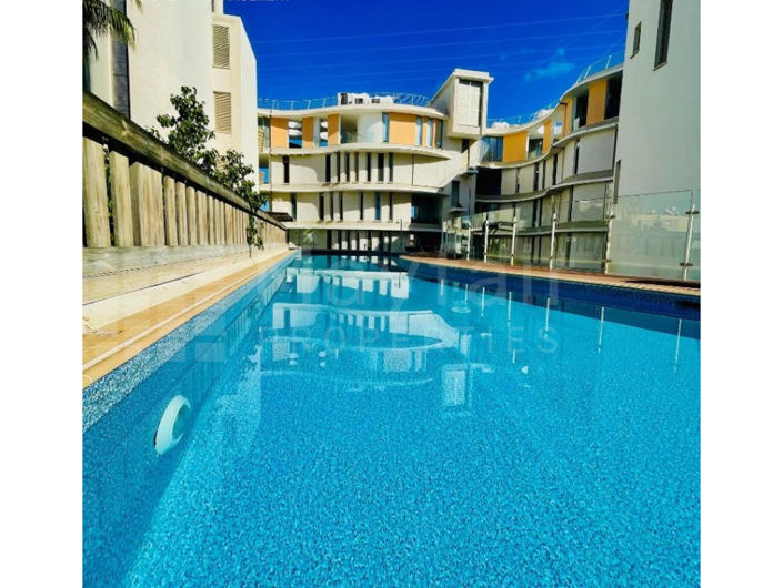 The spacious apartment offers 63 m² of internal area and comprises a bright living room with an open-plan kitchen, a master bedroom, a main bathroom, and a covered veranda of 17 m². Residents can enjoy access to a terrace and a year-round outdoor swimming pool.