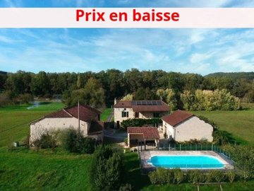 SUPERB STONE PROPERTY WITH SWIMMING POOL AND OUTBUILDINGS ON 5 HA 39 TO 50 CA OF LAND. LOCATED ON THE BANKS OF THE RIVER LOT. 3KM FROM A MAGNIFICENT VILLAGE WITH ALL SHOPS IN THE TOURIST LOT VALLEY. (46700). 188 m² house on 3 levels: living room, kitchen, 4 bedrooms, office, bathroom, shower room, 2 WCs, laundry-boiler room, cellar. Garden level: An entrance of 4.62 m², tiled floor. A 3.1 m² bathroom, shower cubicle, sink, WC, tiled floor. A 3.98 m² cellar, tiled floor. A 23.32 m² kitchen, upper and lower units, central island, double sink, household appliances, tiled floor. A living room of 49.51 m², fireplace + polyflamme stove, exposed stone, tiled floor. A 15.88 m² laundry room - boiler room. 1st Floor: access via an interior wooden staircase or exterior stone staircase: A 17.58m² landing-office, a French window opening onto a covered terrace, tiled floor. 2 bedrooms of 15.86 m², 12.14 m² including one with closet, tiled floor. A clearance of 3.77 m², tiled floor. A bedroom of 11.21 m², tiled floor. A bathroom of 8.59 m², corner bath, shower cubicle, 2 sinks on a unit, tiled floor. A 1.57 m² WC, tiled floor. 2nd Floor: access via an internal wooden staircase A 16 m² bedroom, exposed beams, laminate flooring. Convertible attic. POLYFLAME FIREPLACE STOVE + GAS CENTRAL HEATING + HOT WATER PRODUCTION? DOUBLE GLAZING? 2 SEPTIC TANKS. Outbuildings: an 11 x 5.5 m chlorine swimming pool, liner, paved decks, pool shelters. A barn including a 44.93 m² workshop and a 64.72 m² swimming pool area. A large stone barn of 232 m² comprising a room of 10.86 m², a garage of 105 m², a room of 53.19 m² and a hangar of 62.22 m².