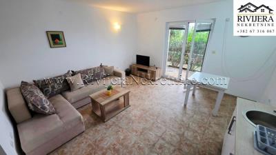 One-bedroom apartment Bijela, Herceg Novi. Apartment area 39 m2 + 7 m2 courtyard terrace, apartment on the ground floor. Layout of rooms: Living room with kitchen, bedroom, bathroom, and terrace. The apartment is fully equipped. Second row from the sea. Price €125,000