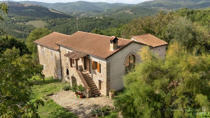 35-ha/86-acres estate with olive grove, two renovated country houses and annex for sale in the umbrian country side near Umbertide. A Timeless Estate Amidst the Green Heart of Italy. Set in the unspoiled countryside near the charming hamlet of Preggio, this enchanting estate unfolds across 35 hectares (86 acres) of organic olive groves, arable land, and forest. Reached by a winding road that begins at the tranquil shores of Lake Trasimeno and meanders through fields and forests, the property offers a rare combination of authenticity, natural beauty, and income potential. At the heart of the estate lies a 500 square meters residential complex, comprising two exquisitely restored stone country houses and an agricultural annex awaiting transformation. The dwellings, thoughtfully positioned to ensure privacy and functionality, blend seamlessly into their environment, an ideal setting both for private living and for refined hospitality ventures. The first house is arranged across three levels, showcases a versatile and welcoming layout. The ground floor features a tavern, an en-suite bedroom, a veranda, and deposit rooms. On the first floor, a spacious living room, kitchen, bedroom, and bathroom open towards the landscape, while the top floor offers two further bedrooms and a bathroom. Sunlit and elegantly proportioned, the interiors carry the timeless charm of Umbrian stone and traditional craftsmanship. The second house, distributed over two levels, retains its rustic character while offering modern comfort. The ground floor is dedicated to service and storage rooms, while the first floor, accessible from a panoramic veranda, welcomes with a warm living room and fireplace, a kitchen, two bedrooms, and a bathroom. An unfinished wing presents further opportunity for bespoke expansion and tailor the residence to individual needs. The agricultural annex, currently to be renovated, provides an additional canvas for creative development, whether for guest accommodation, atelier, or leisure facilities. Beyond the architecture, the estate’s vast grounds are its true crown: a centuries-old olive grove producing organic oil, fertile arable land, and dense woodland alive with birdsong. Manicured gardens and a private access road complete the picture of serene seclusion. This is a property of distinction, where landscape, heritage, and opportunity converge, an exclusive retreat in the most authentic corner of Umbria, capable of offering both elegance of lifestyle and the rewards of sustainable cultivation. PROPERTY Ref: PER3535Location: between Preggio and Lisciano Niccone, Municipality: Umbertide, Province: Perugia, Region: UmbriaType: 35-ha/86-acres estate with olive grove and a 500 sqm/5,181 sq ft complex made of 2 country houses plus an annexLand: 35 ha/86 acres of land including a garden area, 1,5 ha/3.7 ha of centuries-old olive grove, 12 ha/29.6 acres of arable land, and the remaining mainly forestLayout:
