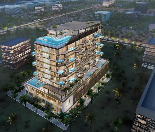 TIVANNO is a luxury complex from AYS Developers on Dubai Island, Dubai. Carefully designed apartments with 1-4 bedrooms are decorated with branded materials and equipped with high-end appliances. The complex provides a chic set of amenities and services, including: an infinity saltwater pool on the roof overlooking the sea and the marina, a cinema room, a children's area, a children's pool, a game room, a balcony with a built-in private Jacuzzi, electric car parking, a lobby with 24-hour concierge services, an Alexa smart home system. The area has a well-developed infrastructure, so residents can count on the best transport interchanges. Dubai International Airport is just 20 minutes away, Business Bay is 33 minutes away, and Downtown Dubai is 20 minutes away.