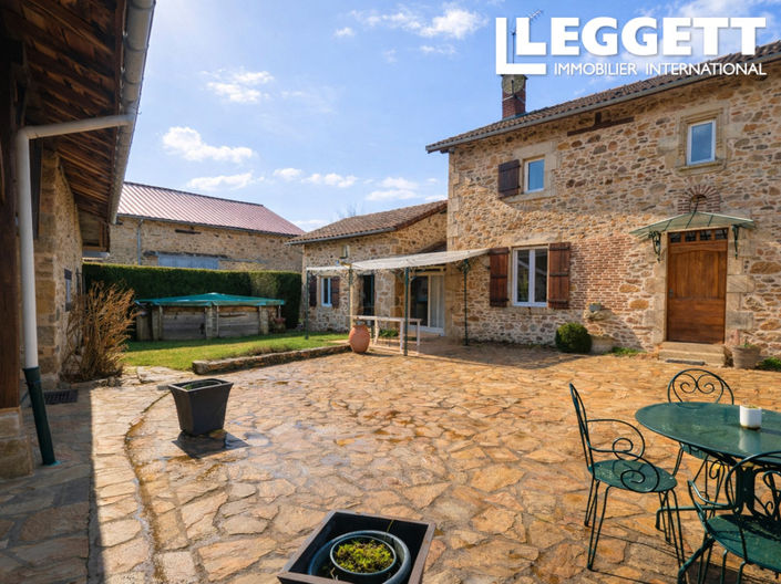 A nicely renovated property with courtyard, above ground pool, garden and various outbuildings including a large barn. Ten acres of land with water source.