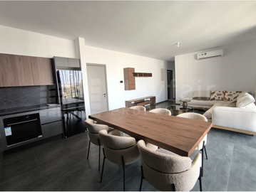 The property offers a total covered area of 80 sqm and features a spacious open-plan kitchen, living room, and dining area. It includes two bedrooms, one of which has an en-suite bathroom, as well as a main bathroom.