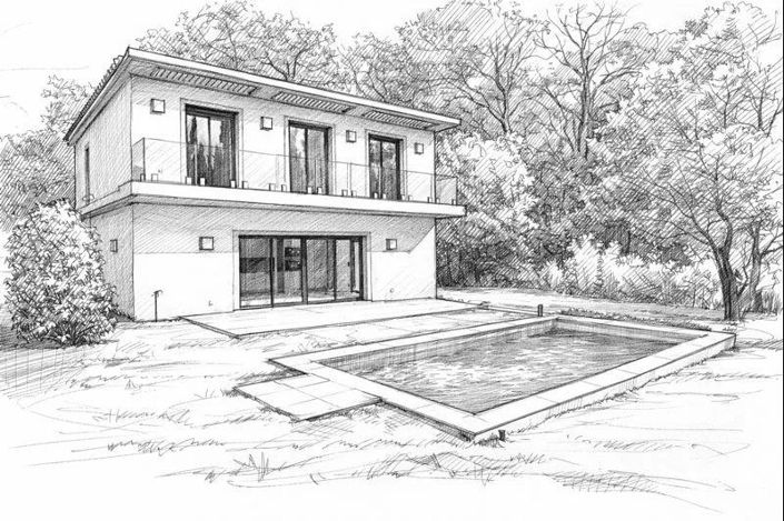 New Californian villa of approx. 160 m², equipped with an elevator, built on a flat 1,055 m² plot, in a quiet location yet close to main roads.