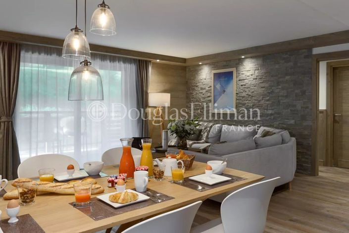 A recently built 2 bedroom apartment with additional bunk room in the centre of Les Gets, only minutes on foot from the high street and ski lifts. This luxury apartment is finished with high quality materials. It has a cave, parking space and ski room, and access to all the excellent services available in the residence.