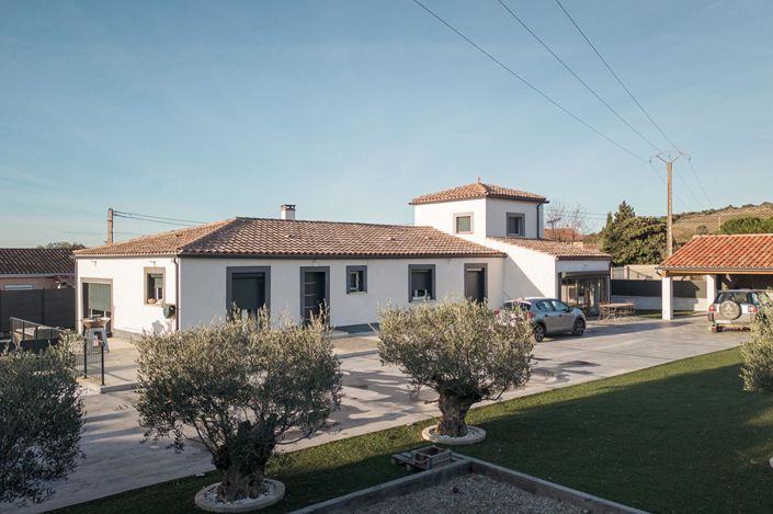 At the entrance to Limoux and less than 20 minutes from Carcassonne and the A61, here is a villa with swimming pool and outbuildings established on a plot of 1591 m² perfectly laid out and enclosed by walls. Recently built on an almost single-storey plan, the villa has 6 main rooms on 190 m². Of which 172m² of living space. Life is organized around a large living room of 36 m² with double exposure extended by the kitchen area of 18 m², fitted out and equipped around a central island, slightly overhanging the living room. The whole forms a living room of nearly 55 m² opening onto the terrace to the south, the swimming pool, and the pool house equipped with a kitchen and toilets. The house has 5 bedrooms including a master suite with bathroom (shower and bath) of 25 m² and a bedroom occupying the small tower that enhances the villa. Two other bathrooms and a studio with equipped kitchen. Double glazed joinery, electric shutters, heat pump (air conditioning). Reversible), automatic gate,... Nothing is missing from the comfort of the place. Outside, all the surroundings are paved, tarred, or covered with synthetic grass for minimalist maintenance. At the back of the plot, there is a shelter for three vehicles while at the entrance you walk along a small bowling alley and then a patch of olive trees. Established in a quiet, green, and hilly area, the villa is only five minutes from the commercial and business area where you will find all amenities. It thus benefits from a privileged location and a preserved living environment. What if you succumb to temptation? For more information, contact us. 3419
