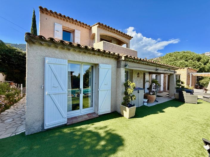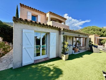 Avec Immo offers this Provençal house in a quiet residential area on a cul-de-sac. It comprises an entrance hall, a spacious living room with a modern fireplace, and an open-plan fitted kitchen, all opening onto the exterior, terraces, swimming pool, and pool house. Also on this level are a bedroom, shower room, and toilet. Upstairs, there is a separate bedroom with a Tropezian terrace overlooking the sea. On the lower level, there is a separate apartment (connected by stairs) comprising a living room with a fitted kitchen, a bedroom, a shower room with toilet, and a private outdoor space. There is also a storage space, a laundry room, and a workshop. There is a jacuzzi, a pétanque court, a barbecue area, and a vegetable garden. The property is set on a beautiful wooded plot of approximately 1200 m2.