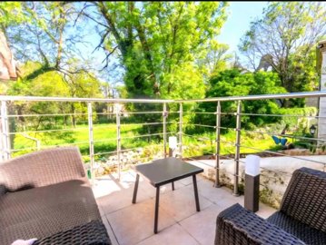 Situated in this popular village, with primary school, just a few minutes from Eymet itself, is this deceptively spacious 3-storey house, with ground-floor terrace, and 1st floor terrace, to make the most of the surrounding countryside views!