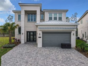 Step into the grand foyer with soaring ceilings for your first glimpse of this refined, six-bedroom, six-and-a-half-bath home, designed in a comfortable and welcoming Transitional style. In the elegant great room, admire the stylish sofas and chairs, and enjoy friendly competition around the beautiful pool table or gather to watch the oversized TV. The open-plan chef’s kitchen is bright and spacious, featuring modern high-end fixtures and hardware, blue and white custom cabinetry, and bright woodgrain floors. Pull up a stool at the kitchen island or set the long, elegant dining table for a fantastic meal. The garage has been converted into a private cinema with an 86-inch screen and movie theater seating, enhanced by classic arcade games for hours of entertainment. For outdoor enjoyment, step into the private screened pool with a spillover spa—perfect for relaxation or friendly games of pool or foosball. The covered summer kitchen with a dining area provides an ideal space to showcase your grilling skills or simply unwind with a good book. Located in the stunning Solterra Resort, Villatel Village is an exclusive vacation community featuring 71 luxury homes and exceptional amenities. Highlights include a private entrance, scenic views, and a covered playground, making it a one-of-a-kind destination for your next getaway.