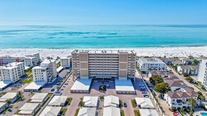 Experience the ultimate Siesta Key beach get-away in your TURNKEY FURNISHED, west-facing condo at Horizons West and just steps from your private beach with plenty of beach chairs and five sun cabanas. Enjoy the crystal sands of Crescent Beach where the sand is always cool and you’ll never miss a sunset. This spacious 1-bedroom retreat boasts over 1,000 sq. ft. and has tiered ceilings up to 9 ½ feet. The west facing wall of oversized 6-foot-high impact windows frame breathtaking panoramic Gulf, beach, resort pool and sunsets sunset views, including dolphin sightings. Perched above the lobby and mezzanine, use the elevator to enter this bright and cheerful end-unit with west and south facing windows in the living room. Enjoy an open, airy floor plan with a designer kitchen featuring stone countertops, stainless appliances, and a breakfast bar. The generously sized bedroom has south and east facing windows and an en-suite bathroom with a beautifully tiled walk-in shower. Resort-style amenities abound: 300 ft. of private beach, two pools, spa, cabanas, grills, and a bayside park with day dock. This unit comes with private carport storage for all your beach toys. Hop on the free Siesta Key trolley for world-class dining and shopping. Come see why Siesta Key is ranked the #1 Beach in the USA and #4 in the world—your piece of paradise awaits!