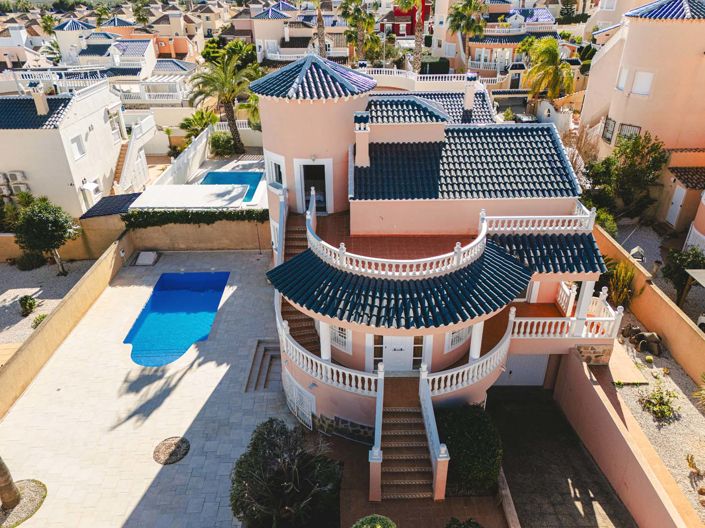 Fantastic opportunity to purchase a three bedroom, two bathroom detached villa with private swimming pool and impressive underbuild offering endless possibilities for further development. Located in a desirable and peaceful location within walking distance to amenities in the sought after village of Pinar de Campoverde, only 10km from the blue flag beaches of Torre de la Horadada and Mil Palmeras.