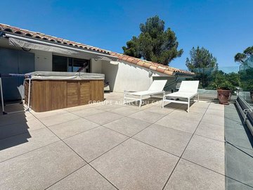 Entrée avec placards, Wc invité, salle de douche et une belle chambre. A l'étage jolie suite parentale avec dressing et salle de bains ainsi qu'une terrasse sur le toit avec jacuzzi. Climatisation gainée. Vendu avec garage double en sous sol.