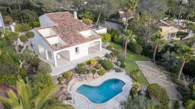 Unobstructed views all the way to the sea from this superb villa with modern amenities, located in one of the most prestigious and secure estates, close to golf courses and shops. Living and dining room, 4 bedrooms each with its own bathroom, fully equipped kitchen, mezzanine office. Swimming pool and pétanque court.