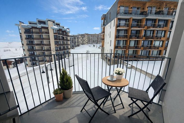 Ideally located in the heart of the resort, this charming studio apartment offers direct access to the slopes, allowing you to enjoy skiing as soon as you step outside the residence.