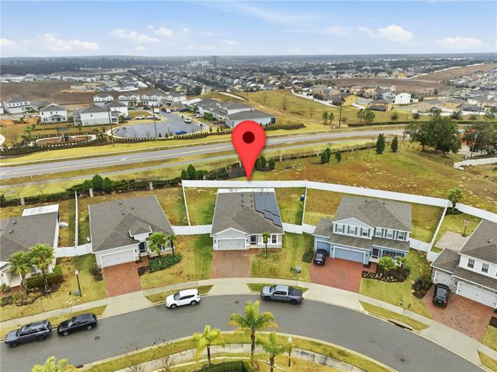 NO ELECTRIC BILL! This spectacular Minneola residence features 36 fully installed 300-watt solar panels, providing a major energy advantage by eliminating electric costs. The fully fenced property offers privacy and is truly move-in ready, featuring 2,034 square feet of living space on a 0.22-acre lot with 4 bedrooms, 2 bathrooms, 9-foot ceilings, no carpet throughout, and all ceiling fans included. Enjoy a spacious covered and screened lanai ideal for outdoor BBQ and entertaining, while the large backyard with no rear neighbors offers room to add a pool, create a play area, install fitness equipment, or build a home garden. The primary bedroom benefits from the lanai roof coverage, helping maintain a cooler and more comfortable temperature by reducing direct sun exposure. The home faces east, allowing for beautiful morning light and cooler afternoons. Additional features include exterior landscape lighting, installed gutters for improved roof drainage, and front windows with solar tint to help reduce heat. The home also includes a whole-house water softener and filtration system, plus an additional kitchen water filter for enhanced purity. The kitchen is equipped with an exterior-vented range hood, ideal for removing cooking odors. The extended paver driveway provides comfortable parking, and the community pool is located directly across the home next to the mailbox area, allowing convenient walks to collect mail while enjoying neighborhood amenities. Located just 3 minutes from the recently expanded Florida Turnpike and approximately 20 minutes to I-4, this prime location offers easy access to Orlando’s major attractions, shopping centers, supermarkets, AdventHealth hospital, and popular cycling routes. Built in 2020, this home includes upgrades rarely found in new construction, making it an exceptional opportunity for comfort, efficiency, and location.