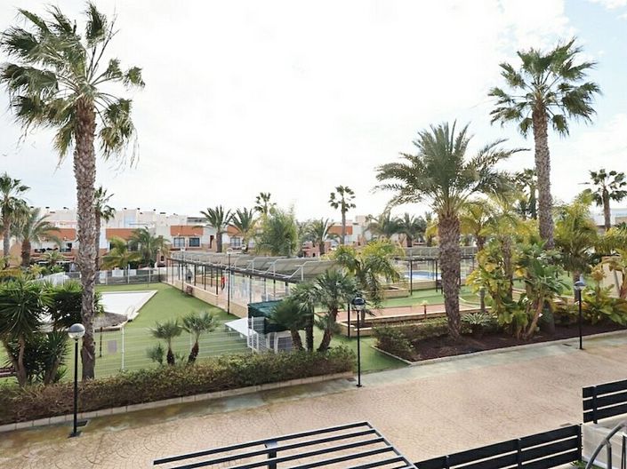 The outdoor spaces are the true highlight: a large front garden overlooking the lush communal grounds and a private rooftop solarium with panoramic views of the two sparkling swimming pools and children's play area. Complete with a massive 97 m2 private garage/basement, this home offers unparalleled space and comfort in the heart of Playa Flamenca.