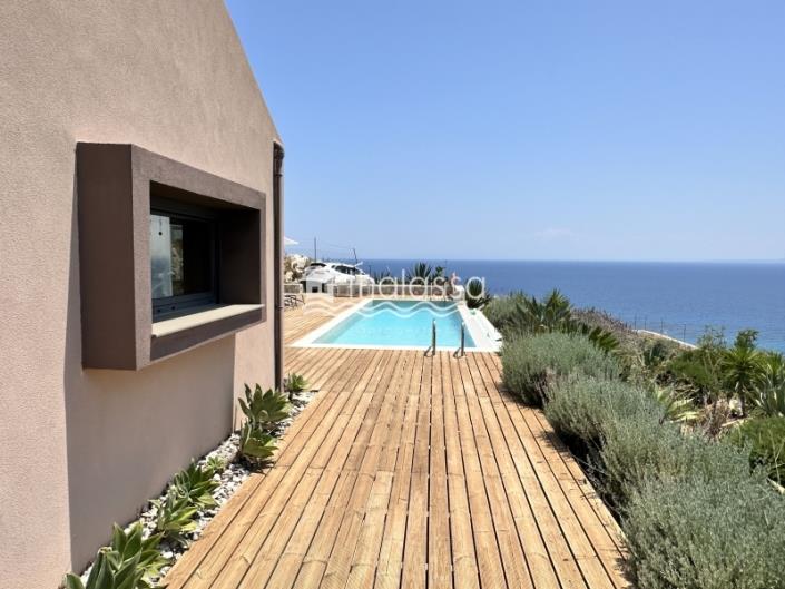 Villa is on the Ground floor and features 2 Bedrooms, 2 Livingrooms, Kitchen, 2 bathrooms . The property also boasts Heating system: Air conditioner, tiled floor, view of the Sea, Window frames: Aluminium, garden, swimming pool, A/C, electrical appliances, awnings, insect screens, double-glazed windows, BBQ, open space, internal staircase. The building was constructed in 2016 Plot area: 3500 s.q. . Building Energy Rating: D Distance from sea 800 meters, Distance from the city center: 38000 meters, Distance from nearest village: 1500 meters, Distance from nearest airport: 36000 meters,
