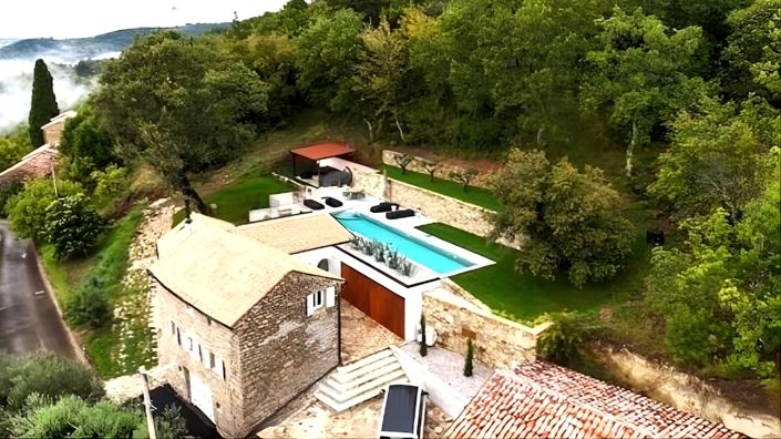 Luxury designer stone house with heated pool for sale near Oprtalj, a fully renovated authentic Istrian property offering 180 sq.m. of living space on a 786 sq.m. landscaped plot, located approximately 30 km from the Adriatic Sea in the scenic hills of northwestern Istria. This exclusive countryside residence combines traditional architecture with modern comfort, making it a rare opportunity to purchase a luxury stone villa in Croatia’s renowned truffle, wine, and olive oil region.Oprtalj, one of the most picturesque hilltop towns in Istria, is known for its mild Mediterranean climate, sunlit slopes, rich cultural heritage, and breathtaking panoramic views stretching from the Ucka mountain to the western Istrian coast and even toward Trieste. Positioned above the Mirna River valley opposite Motovun, the area is celebrated for its unspoiled nature, gourmet gastronomy, and peaceful lifestyle, attracting buyers seeking privacy, authenticity, and high-quality real estate in the Istrian interior.Located in a tranquil setting surrounded by vineyards, olive groves, and forested hills, this designer stone house offers unforgettable views of Motovun and the surrounding landscape. Carefully restored from a traditional old Istrian stone house, the property preserves indigenous architectural elements while introducing elegant contemporary interiors and functional outdoor living spaces, creating a unique blend of heritage and luxury.The interior radiates warmth through the combination of natural stone and wood, complemented by designer furniture and meticulous attention to detail. The living area is distributed across three levels including a basement, ground floor, and attic. The basement features a wine cellar with a separate entrance and a bedroom with en-suite bathroom and private access, ideal for guests. The ground floor includes a comfortable living room, a kitchen with dining area, a bedroom with gallery space and en-suite bathroom, and a guest toilet, providing a harmonious layout for both everyday living and entertaining.The enclosed garden is thoughtfully landscaped with Mediterranean plants, offering privacy and a serene atmosphere. The outdoor area is highlighted by a heated swimming pool measuring 14 by 3 meters with a sunbathing area and a covered summer kitchen designed for al fresco dining and relaxation while enjoying panoramic views of the surrounding countryside.Thanks to its peaceful location, authentic character, modern amenities, and proximity to the sea and major Istrian destinations, this luxury stone villa near Oprtalj represents an ideal choice for a private family residence, countryside retreat, or a high-end investment property for tourist rentals in one of Croatia’s most desirable inland regions. Ref: RE-U-45559Overall additional expenses borne by the Buyer of real estate in Croatia are around 7% of property cost in total, which includes: property transfer tax (3% of property value), agency/brokerage commission (3%+VAT on commission), advocate fee (cca 1%), notary fee, court registration fee and official certified translation expenses. Agency/brokerage agreement is signed prior to visiting properties.Property advantages: Swimming pool, Garden, Stone house, Modern