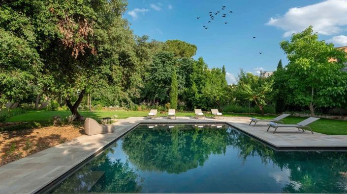 In the basement, the structure is prepared for the addition of a spa or other recreational activities, utilising the ample spaces available to increase the attractiveness of the structure. The vast external private park, with its native essences and historic centuries-old oaks, ensures an exclusive context for moments of relaxation in contact with nature. The pool, about 70sqm, and a jacuzzi, harmoniously inserted into the greenery of the garden, is the ideal place for moments of relaxation and leisure as well as a dependence ideal for hosting a small bar-restaurant or a clubhouse for guests.