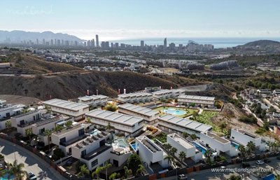 Perched above the Mediterranean coastline, these terraced villas in Balcón de Finestrat offer a contemporary take on hillside living, combining open views, everyday convenience and easy access to the coast. The setting enjoys a calm residential atmosphere with wide panoramas across the surrounding landscape, and all homes benefit from sea views extending towards Benidorm. Shops, restaurants, international schools and essential services are close at hand, while outdoor activities are woven naturally into daily life thanks to nearby walking routes, cycling paths, sports facilities and prestigious golf courses.The homes are available on 2 or 3 levels, all with 3 bedrooms and 2 bathrooms, arranged around a bright, open-plan living, dining and kitchen area. This main living space serves as the entrance level and also includes a guest toilet, designed to maximise natural light and create a fluid connection between indoors and outdoors. All 3 bedrooms are located on the first floor, including a master bedroom with en-suite bathroom, offering a practical and well-balanced layout for year-round living or extended stays.The living area, in the homes on 2 levels, opens directly onto a terrace and garden, ideal for relaxed outdoor dining and everyday enjoyment. While in the homes arranged over 3 levels, a versatile basement level opens onto its own terrace and an enclosed garden area with direct access to the community spaces, making it suitable as a leisure room, workspace or additional living area. Depending on the stage of construction, buyers can personalise the high-quality finishes by choosing from a selection of materials, and it is also possible to add an extra bathroom in the basement at additional cost.All homes include air conditioning, electric blinds in the living area and bedrooms, solar panels, and a parking space with pre-installation for an EV-charger, with some properties offering open-air parking depending on their position within the complex. The communal areas feature landscaped gardens with fully accessible pathways, a large pool for adults and a separate pool area for children.Nearby places of interest include Puig Campana Golf, reached in around 5 minutes by car and ideal for rounds of golf in a scenic mountain setting. The sandy beaches and vibrant promenade of Benidorm are approximately 10 minutes away, offering a wide choice of restaurants, cafés and seaside activities, while the marina of Villajoyosa, with its colourful harbour and relaxed waterfront dining, is about 15 minutes by car. Alicante airport is reached in around 35 minutes, making travel straightforward and convenient. Together, these nearby highlights create an appealing balance of sea views, leisure options and everyday connectivity for enjoying the Costa Blanca lifestyle throughout the year.