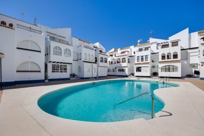 The apartment features a sunny terrace overlooking the communal pool, a perfect space to relax, enjoy the pleasant weather, and keep a watchful eye on the children as they play. It's located in a well-maintained complex with a friendly community and a pleasant atmosphere.
