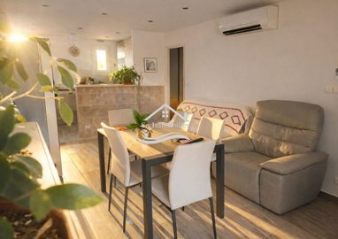 Includes: entrance, bathroom with toilet, equipped kitchen opening onto the living room, 1 spacious bedroom, reversible air conditioning, double glazing, and a south/east facing terrace.
