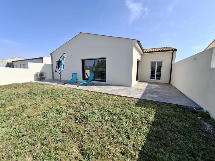 Semussac, quietly located just 1 km from shops and 5 km from Meschers and the beaches: a 2025 single-storey house combining comfort and modernity, comprising: entrance, toilet, 55 m² living-dining room flooded with light with panoramic bay windows and an open, fitted kitchen, hallway, 3 bedrooms of 12 m² with wardrobe fittings, bathroom (double shower, double sink) with toilet. Underfloor heating by heat pump. Adjacent, insulated and tiled garage. Beautiful 45 m² south-facing tiled terrace. Enclosed garden of about 100 m² with no overlooking and parking for 2 vehicles. A must-see: quality quasi-new house, come and bring your furniture! Fees included of 4.84% VAT payable by the buyer. Price excluding agency fees: €310,000. Energy class A, Climate class A. Estimated annual energy expenses for standard use: between €400 and €570 for years 2021, 2022 and 2023 (subscriptions included). Information on risks available on the Géorisques website.