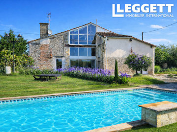 Upstairs, a spacious mezzanine overlooks the main living area and leads to 3 additional bedrooms & 2 bathrooms creating a light and airy family space. Relax by the pool with it's summer kitchen & jacuzzi overlooking the stunning views. The property benefits from a large wine cellar, greenhouse, is surrounded by landscaped gardens orchards & has it's own little lake.