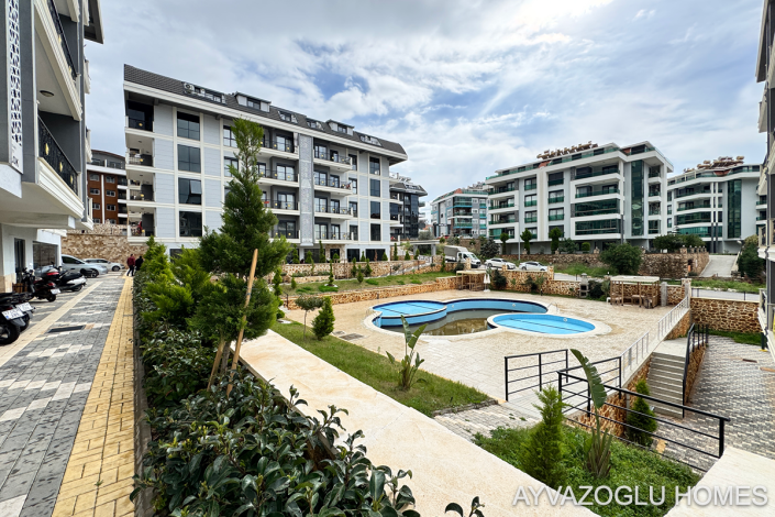 This 2+1 apartment, measuring 85 m², is located on the second floor of a residential complex in Oba. The convenient layout includes a living room with kitchen, two bedrooms, a bathroom, and a balcony, making it ideal for both living and relaxing.
