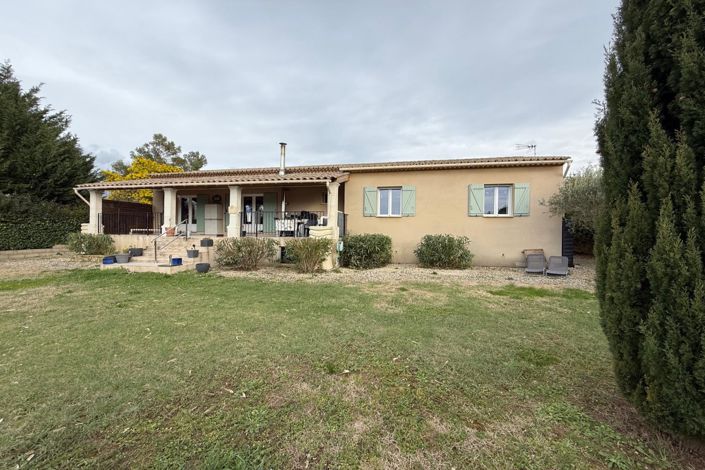 Uzes nearby, 3 minutes from shops, southwest-facing villa built in 2012 on a fenced 1297 m² plot with a private pool area and no overlooking neighbors - Entrance with closets, large open-plan living room with fully equipped American kitchen opening onto a covered terrace, pantry/laundry room, 3 large bedrooms with closets, shower room with toilet, and separate toilet with hand basin - Attached insulated 20 m² garage and carport - Reversible air conditioning, wood stove, fiber optic, rainwater collection tanks, crawl space. No work needed!
