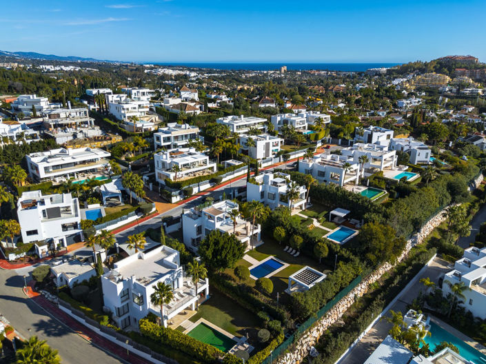 Villa - Chalet, Nueva Andalucía, Costa del Sol. 6 Bedrooms, 5 Bathrooms, Built 473 m², Garden/Plot 1351 m². Location: Close to Golf, Close to Town. Orientation: South. Condition: Excellent, New Build. Pool: Private. Climate Control: Air Conditioning, Fireplace, Underfloor Heating. Views: Sea, Golf, Countryside. Features: Covered Terrace, Elevator, Fitted Wardrobes, Private Terrace, Solarium, Games Room, Storage Room, Utility Room, Double Glazing, Basement, Fiber Optic Internet. Furniture: Furnished. Kitchen: Equipped. Security: Gated Community, Intercom, Alarm, 24-Hour Security. Parking: Garage, Covered, More than one, Private. Utilities: Electricity, Mains Water. Category: Golf, Holiday Homes, Investment, Luxury. Solarium. Game room. Double glazing. Basement. Fiber optic internet. Gated community. Intercom. Alarm system. 24-hour security. Electricity. Drinking water. Golf course. Vacation homes. Investment opportunity. Luxury property.