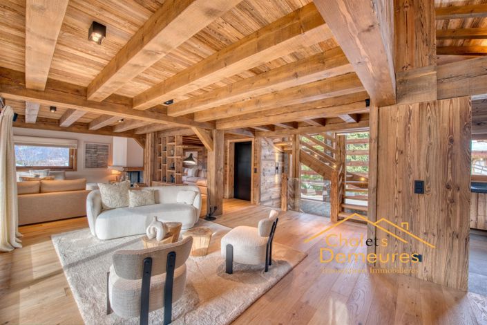 Mont d'Arbois, close to the ski slopes and golf course. Magnificent 2023 build, with high-end materials and fittings and an old-world charm, featuring old stone and wood across approximately 359 m² of living space. Large double living room with fireplace, 6 en-suite bedrooms including 1 master, cinema room, spa with Jacuzzi and hammam, laundry room, lift and double garage complete this exceptional property.