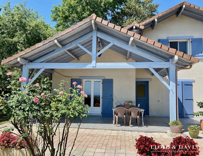 This lovely property on more than two hectares has many sought-after features: peace and an unobstructed view of the countryside and the Pyrenees range, which you can admire from the living room or the covered terrace, a shaded garden and a large wooded area hosting squirrels and deer. The 6-room house offers fine amenities over 162 m² and no work is required. It can be lived in on one level, with the sleeping area including two bedrooms, a bathroom, and a separate toilet. An independent-entry study could offer a third bedroom on the garden level. The living room and open-plan kitchen form a large bright 54 m² space with French doors facing the panorama. The upstairs consists of a large landing, two bedrooms, a washroom and storage attic space. The outbuilding houses 3 vehicles and could easily be converted into living space. The garden is fenced and access to the property is via an automated gate. The hillside is easily accessible, and the towns of Salies-de-Béarn and Orthez are less than 10 minutes away. A bilingual English school in Orthez. Possibility to add a pool. Pau Airport is 40 minutes away, Puyoô Station 15 minutes, and highway access less than 10 minutes. Come visit this peaceful haven in a bucolic and preserved environment, ensuring a comfortable life in total serenity. For information, call Dominique Gallet or send an email: