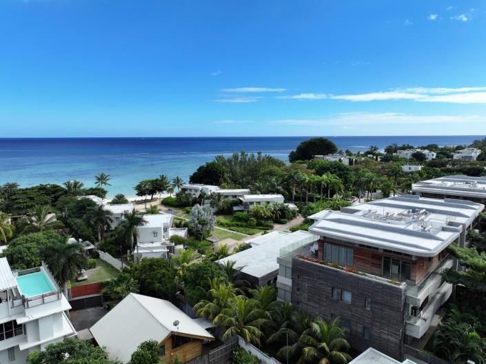 Set along the quiet western shoreline of Mauritius, this three-bedroom ensuite apartment at Manta Cove offers a relaxed coastal setting within one of Tamarin’s most naturally striking locations. Positioned between the mountains of the Black River region and the calm lagoon waters near La Preneuse, the development enjoys a rare beachfront position on freehold land with direct access to the sea.