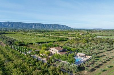 This handsome stone farmhouse lies in the heart of the Gordes countryside and has been the subject of a complete and masterful renovation. Nestled within 7.4 acres of private fruit orchards, olive groves, and landscaped gardens, the property offers remarkable privacy and superb views of the Luberon mountain range. The craftsmanship throughout is exemplary, combining high-quality materials, a refreshingly contemporary palette, gorgeous original features, and refined décor - all working together to create a harmonious blend of authenticity and modern comfort.The accommodation begins with a welcoming open-plan living space, where a striking floating stone staircase and a glass-walled wine cellar set the tone. This great room comprises: bespoke contemporary kitchen by Fabre with black quartz countertops sun-drenched sitting room benefitting from triple-aspect French windows framing views over the countryside towards the Luberon generous dining area. The ground floor also includes a principal suite with adjoining shower room and fitted cupboards. Floors throughout are laid in beautiful Jerusalem stone.The first floor comprises two spacious double bedrooms sharing a shower room with Wc and walk-in shower. Two further independent suites on the garden level complete the accommodation, each benefitting from its own private shower room and Wc, as well as direct access to the terraces and gardens.The landscaped grounds are beautifully designed, with flowering plants and manicured shrubs ensuring both privacy and colour throughout the year. A variety of terraces encompass the farmhouse, providing different areas for entertaining family and friends. The main living spaces open directly onto a dining terrace shaded by a pergola and overlooking the gardens. A cypress-lined avenue leads to a west-facing seating area, perfectly positioned to enjoy sunsets among the olive trees. To the east, a charming courtyard shaded by two plane trees and planted with boxwood and flowering shrubs creates a picturesque Provençal setting.Overlooking the grounds, the heated saltwater swimming pool (10m x 5m) is equipped with a submerged electric cover and a heat pump, and is complemented by a shaded seating area and a generous wrap-around terrace.Amenities include: reversible air-conditioning throughout the house mains water and Canal de Provence irrigation for the garden compliant septic system fibre-optic internet double glazing with bespoke wood and wrought-iron frames carport.Perfectly located in the Gordes countryside, within easy reach of Coustellet, Ménerbes, Goult, and Cabrières-d'Avignon, this property represents an outstanding blend of Provençal charm, architectural refinement, and modern convenience. It would serve equally well as a luxurious holiday retreat or as an attractive rental investment opportunity.
