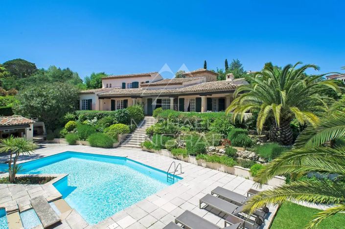 Exclusive – Super Cannes | Nestled in a peaceful and highly sought-after residential setting just minutes from the centre of Cannes, this majestic family property of approximately 351 sqm captivates with its generous volumes, timeless elegance and open views over the surrounding hills, enhanced by a lovely sea glimpse from the upper floor.