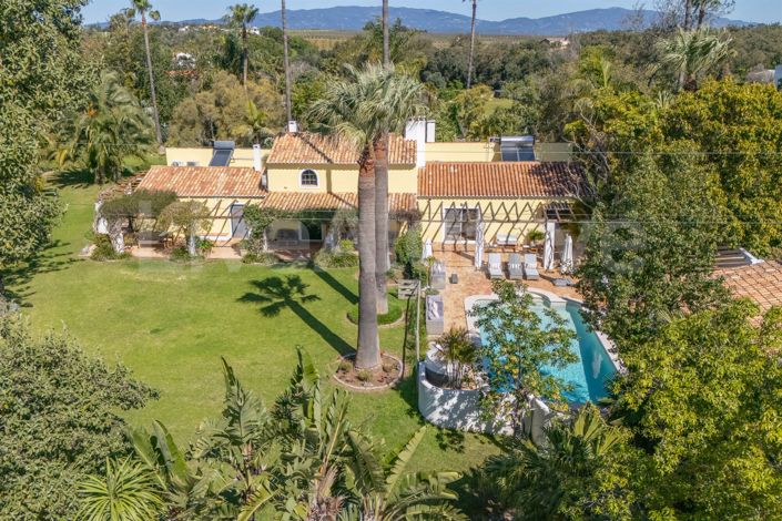 The surrounding land contributes to the estate’s character. Landscaped gardens blend with productive agricultural zones, including an orchard, a greenhouse, and a palm nursery. These elements may appeal to owners interested in sustainable land use or small-scale agricultural experimentation.