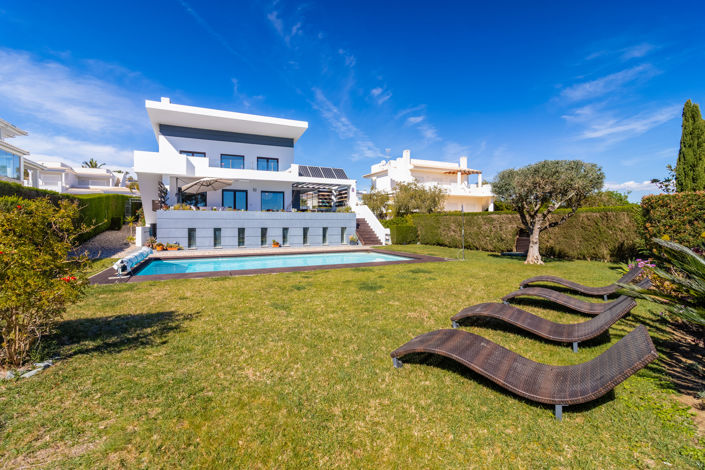 Outside, the villa is surrounded by beautifully landscaped gardens with automatic irrigation, ensuring a peaceful and private setting. A summer kitchen, with built-in BBQ and pizza oven, and another outdoor dining terrace creates the perfect spot for entertaining. The heated pool allows for year-round enjoyment, while features such as air conditioning, an alarm system and security cameras ensure comfort, efficiency and peace of mind - all controlled by a full house WiFi and ultrafast fibre.