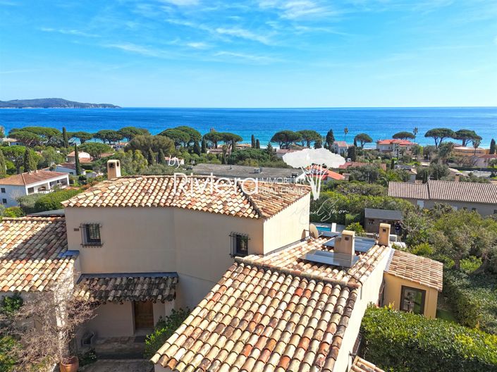 In a small, very private residential area, panoramic sea view and beach within walking distance (200m) for this property of approximately 180m2 on a fully landscaped plot of 1330m2! This property offers a spacious 56m2 living/dining room with a fireplace, opening onto the outside and boasting magnificent views of the bay, Cap Lardier, and the port of Cavalaire. There is a separate, fully equipped and functional 17.73m2 kitchen with an adjoining laundry room, four bedrooms (including a 32.5m2 master bedroom with a veranda converted into an office and stunning sea views, and three further bedrooms of 11.88m2, 11.73m2, and 12.14m2, two of which also offer beautiful sea views), a bathroom, and a shower room. Features include reversible air conditioning, an alarm system, a heated swimming pool with a roller cover and terraces, a garden shed, a garage, and parking spaces. All this in a peaceful setting just a stone's throw from the beaches and shops (mini-market, bakery/tea room, and beach concessions in the summer...!)