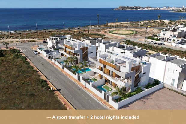 This premium new-build penthouse is situated just 150 meters from the beautiful Playa Negra in Puerto de Mazarrón. As part of a boutique development, the property offers modern living areas and impressive sea views, making it suitable for a permanent residence or a holiday home. A highlight of the residence is the private rooftop solarium, which provides an ideal space for sunbathing and outdoor dining. The interior features two bedrooms and two bathrooms, with the bathrooms benefiting from electric underfloor heating. The property includes a large terrace overlooking the sea, ducted air conditioning, and a kitchen fully equipped with appliances. High-quality finishes are evident throughout, including double-glazed PVC exterior carpentry and a reinforced security entrance door. Residents also have access to a communal pool, a storage room, and underground parking. Located in the popular Murcia region, Puerto de Mazarrón is known for its charming marina and Mediterranean lifestyle, offering activities like sailing, hiking, cycling, and scuba diving. All necessary services, such as medical centers, schools, restaurants, and supermarkets, are nearby. With its proximity to the Mazarrón Marina and local golf courses, this penthouse represents a strong investment on the Costa Cálida. Please contact us to arrange a viewing.