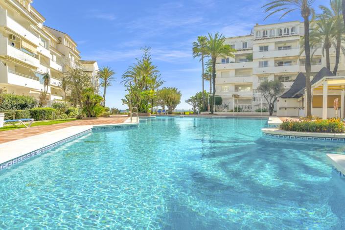 Playa Real is a gated, front line beach complex with manicured gardens, a very large swimming pool and within walking distance to many beach restaurants and amenities in Elviria.