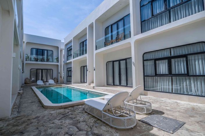 Experience golden Bali sunsets from your own modern Mediterranean apartment in the heart of Canggu. This stylish 1-bedroom home blends warmth and simplicity, offering enclosed living, a sleek kitchen, and a shared pool surrounded by tropical calm. Just steps from Jl. Nelayan and a quick ride to surf breaks, cafés, and nightlife, it’s the perfect base for digital nomads or investors seeking lifestyle and return. With west-facing views and professional management already in place, this turnkey apartment captures the very best of Canggu living - bright, effortless, and beautifully designed.