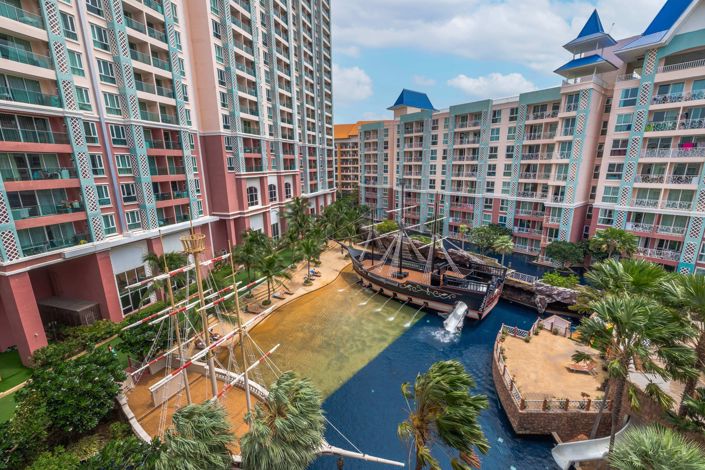 FacilitiesResort style swimming pools with water slides and pirate shipFitness center and saunaGames room and kids play areaMini cinema and libraryOn site café and shops