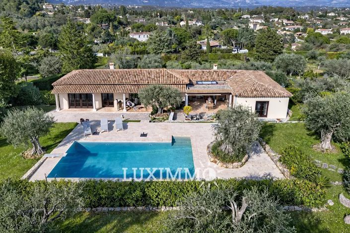 Mouans-Sartoux/Castellaras - Located in a dominant position, in a quiet area, this single-story charming villa of approximately 180 m² is built on a wooded land of 4286 m² with a heated/cooled pool.