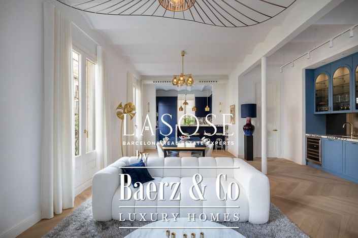 At Lasose, we are proud to present you the following property we have for sale: . . A stunning 183 m2 apartment on the 3rd floor that enjoys abundant natural light due to 4 balcony doors that look . over calle Girona. Newly renovated and designed. . The open-plan kitchen and dining area seamlessly connect to the living room, that has its own bar / pantry with two . wine fridges and a second dish washer. The veranda attached to the kitchen is a great spot for a morning coffee.. The home offers furthermore three spacious bedrooms and a total of three bathrooms, providing both privacy and . comfort. The master bedroom has its own large balcony. . Premium finishes, oak flooring and high-end materials define every detail of this home, combining timeless . elegance with contemporary design. Large windows and high ceilings create a sense of openness and luminosity . that perfectly complements the architectural beauty of the building.. This property represents an opportunity to acquire a fully renovated, turn-key home in one of Barcelona’s most . desirable locations, ideal for those seeking space, light, and modern luxury in the heart of the city.