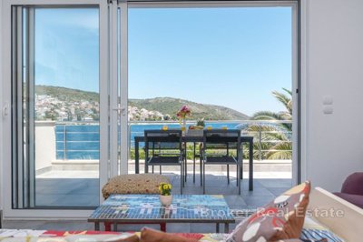 For sale is a beautiful house built in 2011, located in the first row to the sea on Ciovo, in a peaceful area where you can step directly from your garden onto the beach and into the crystal-clear sea. The house has been carefully built and well maintained, with every room designed in a charming Mediterranean style.