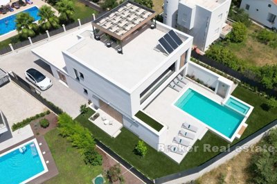 This modern, newly built villa with a swimming pool and jacuzzi is the perfect choice for those looking for a luxurious home or investment on the eastern side of Split. Situated on a plot of 780 m², the villa has a spacious living area of ??360 m², providing enough space for a comfortable family life or a tourist rental.