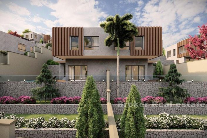 For sale is a semi-detached villa under construction with a beautiful view of the sea. The villa will be located on the northern side of the island of Hvar, in an elevated and peaceful location, in the very center of a small town. It will be surrounded by similar newly built villas and residential buildings, with a northern orientation and luxurious design.