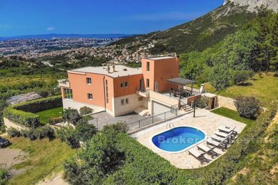 Newly built comfortable villa with pool is located on a small hill and offers a breathtaking view of the city of Split and the sea.
